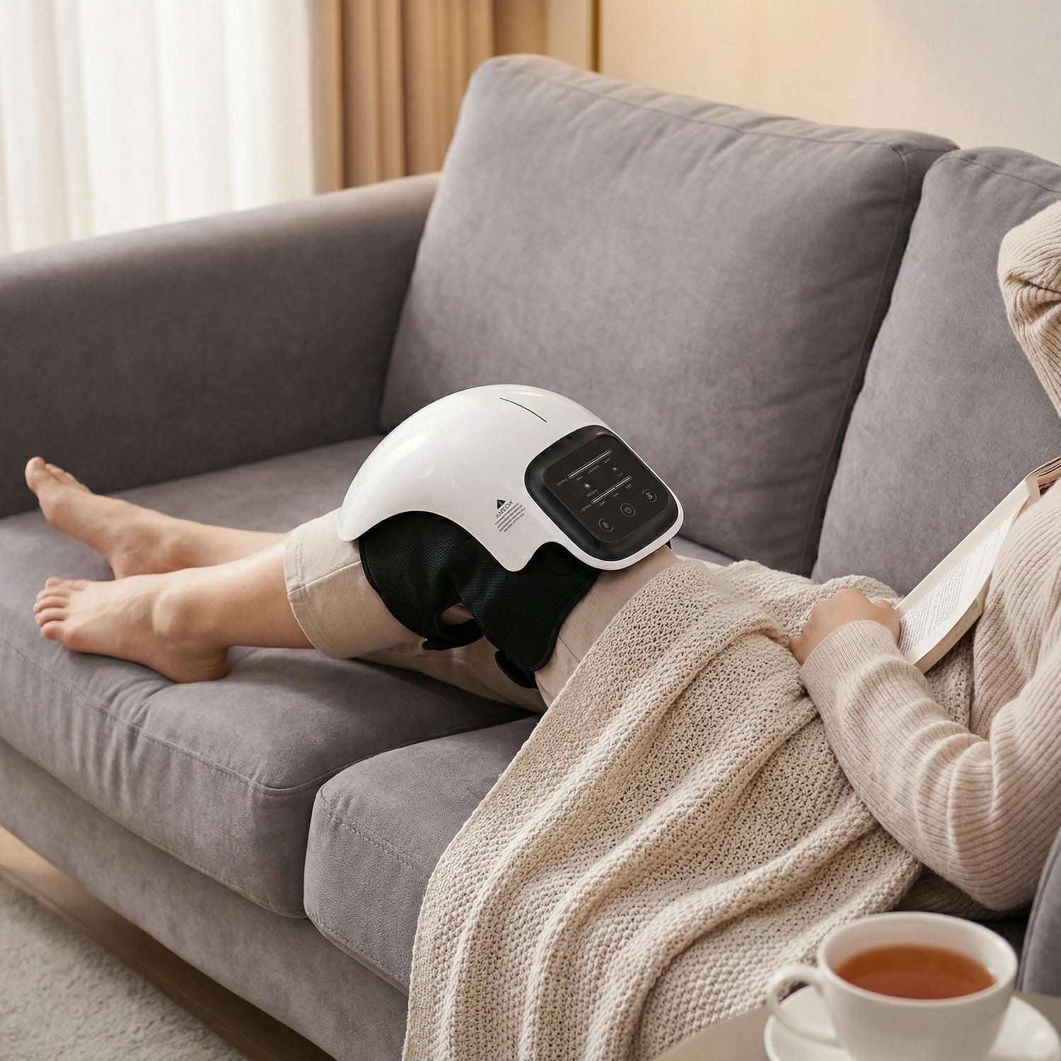 It delivers targeted massage and gentle heat to the knee area to help relax muscles, improve comfort, and support recovery after activity.