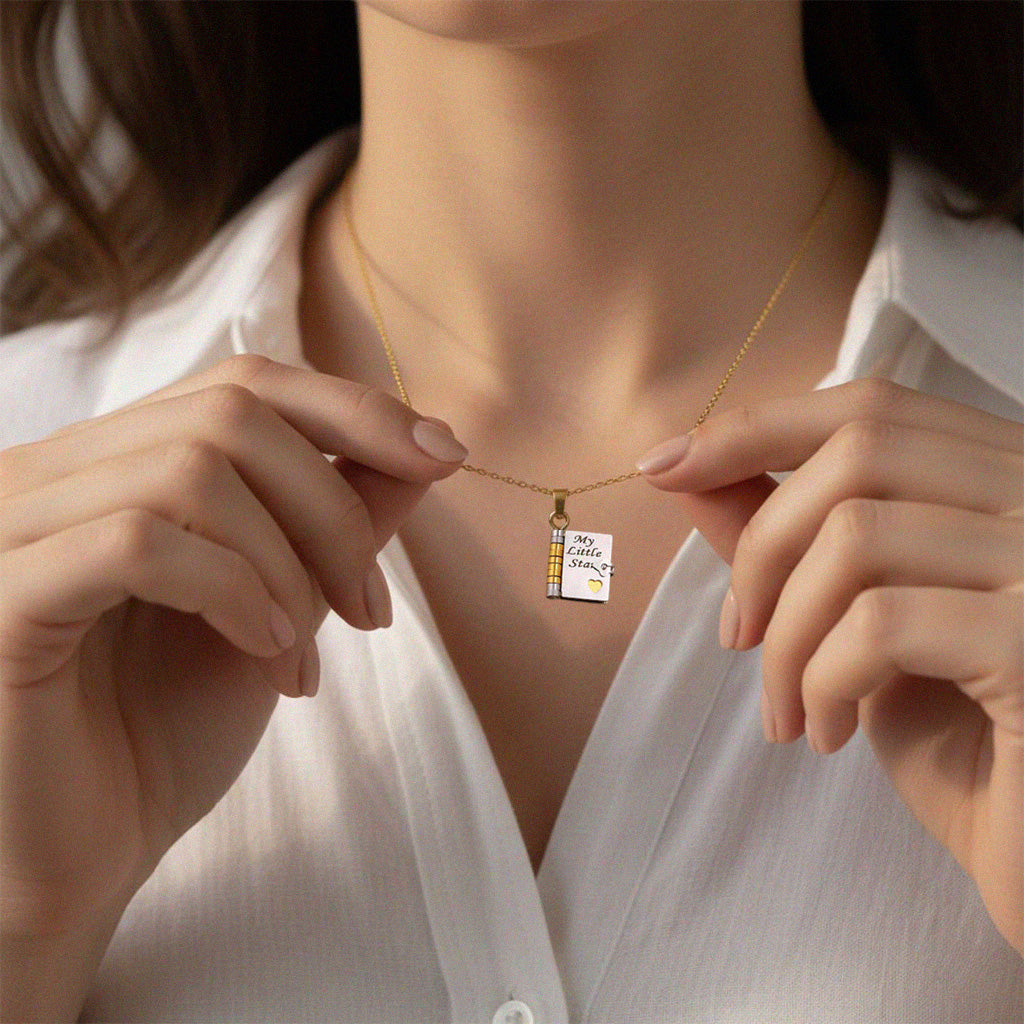 Crafted with exquisite detail, this charming necklace features a tiny book that reads "My Little Star" on its cover. It's a beautiful, tangible symbol of your affection, designed to be cherished for years to come.